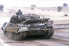 Emerging at sped from Loch Lee on the Puckapunyal range, this Leopard AS1 of